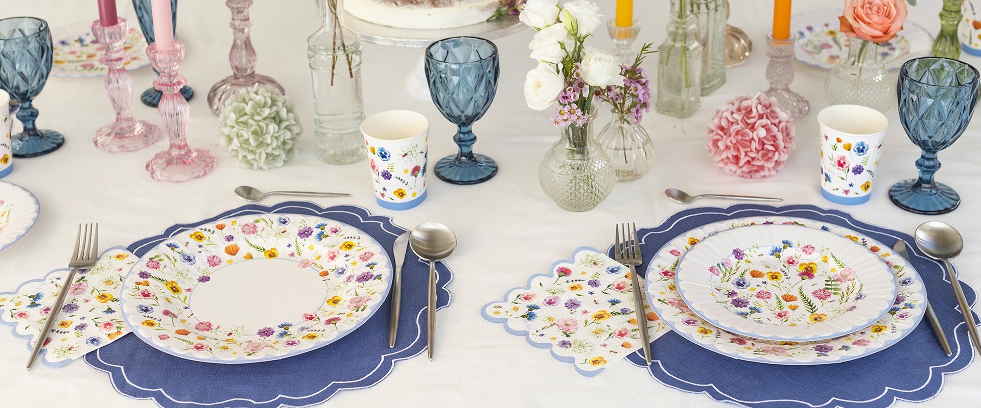 Servizi di piatti , bicchieri e tovaglioli coordinati.